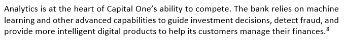 Capital One is known for building analytics-based strategies. In their words, via some sponsored Harvard Business Review content: